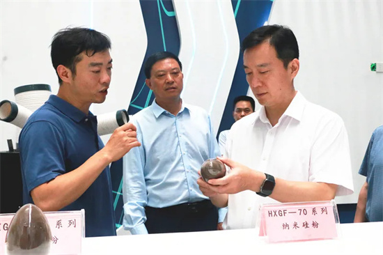 孔涛一行先后听取了铜陵恒鑫圭碳新材料科技有限公司总经理章进、董事长章根友和技术专家等有关情况汇报。同时,考察了该公司锂离子电池硅碳复合负极材料生产车间。