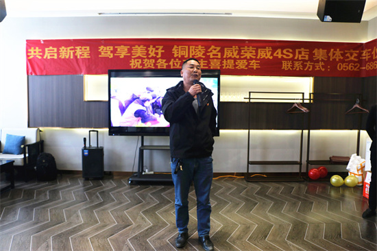 王承军在活动致辞时指出,感谢枞阳车友们选择了荣威E6,这是对我们4S店的最大信任与关爱!过去这段时间,我们收到了许多师傅在运营中对E6的认可,这是对我们继续努力做好服务的动力,我们将始终以“节能、可靠、舒适”为核心,我们不仅在售车方面做到优质服务,保证购买荣威车辆的车主称心如意。同时,我们不断完善和优化车辆售后服务体系,严格兑现服务承诺,为用户提供及时、高效、便捷的服务,保证车主最大的满意。(黄言为)